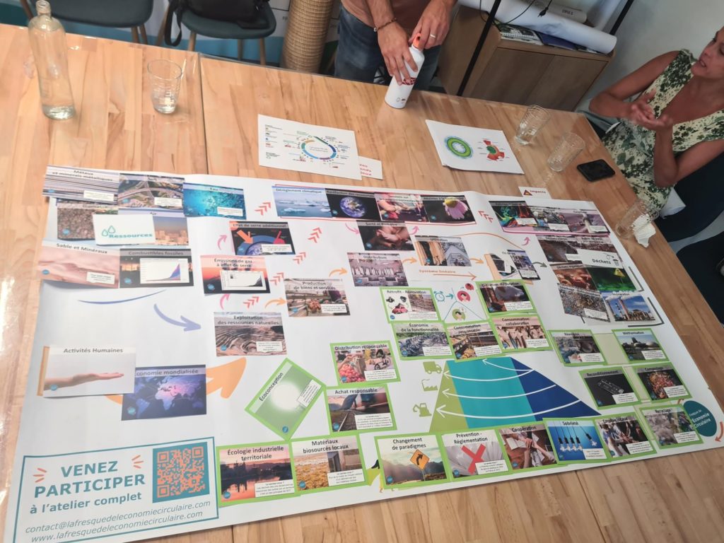 🧠 Pendant 3 heures, 14 participantes et participants ont pu décrypter les enjeux systémiques liés à nos modes de production et de consommation, puis partager leurs visions autour de la circularité dans nos métiers : gestion des ressources, réemploi, écoconception, cadre réglementaire…